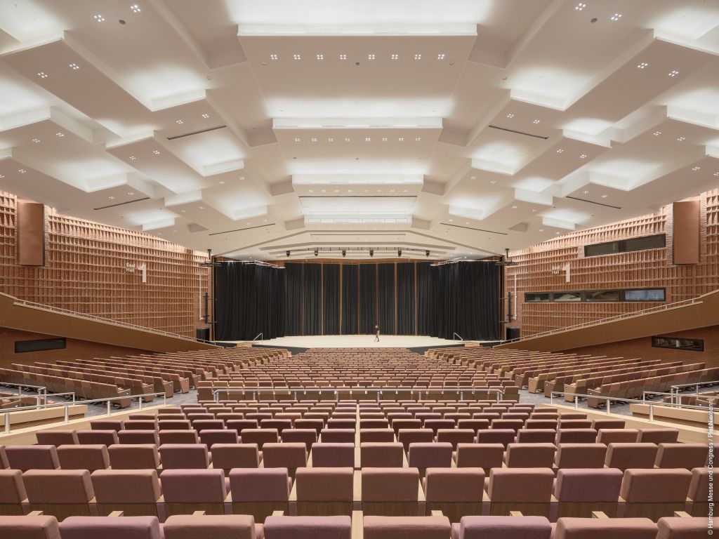 Right in the middle of the beautiful city of Hamburg is the CCH – Congress Center Hamburg: The Hamburg Messe und Congress exhibition campus, with 87,000 square meters of exhibition space, and the inner city can be reached on foot in a matter of minutes. As one of Europe’s most advanced and largest convention centers with 36,000 square meters of available space, it breaks the mold. The number “12,000” has an almost magical significance: 12,000 square meters of event space, another 12,000 square meters of foyer space, and a total number of 12,000 visitors who can attend events at the CCH simultaneously.